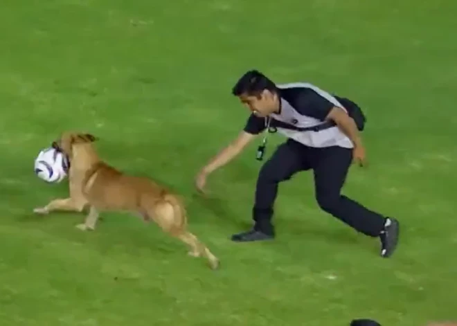 Spēlē starp Oaksakas "Alebrijes" un Sinaloa "Dorados" otrā puslaika kompensācijas laikā laukumā paradījās vidēja izmēra suns, kurš, acīmredzot, bija pamanījis bumbu. Viņš droši devās klāt pie viena no vārtsargiem, kuram tajā brīdī rokās bija bumba, kaut kādā veidā to viņam atņēma, un līksmība varēja sākties!