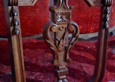 Krēslu atzveltnēs ir iestrādātas zīmes, kas, iespējams, liecina par piederību kādai ar mūziku saistītai organizācijai vai biedrībai – attēlota ģitāra un klarnete.