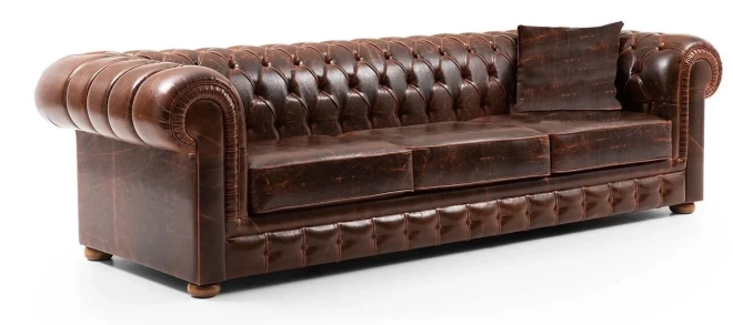 Chesterfield klasiskais mīksto mēbeļu dizains nekad neiziet no modes. Ja arī tev patīk šī stila elegance, izsmalcinātība un komforts, ko nodrošina Chesterfield stilam raksturīgie dziļi ielaistie sēdekļi, atzveltnes un atpazīstamais spiedpogu raksts, šis dīvāns ir izcila izvēle. Dīvāna virskārta izgatavota no mākslīgās ādas klasiskajā tumši brūnajā tonī, dīvāna rāmis izgatavots no koka, savukārt sēdvietu materiāls no atsperīga putu pildījuma. Papildu eleganci piešķir zemās, noapaļotās koka kājas.