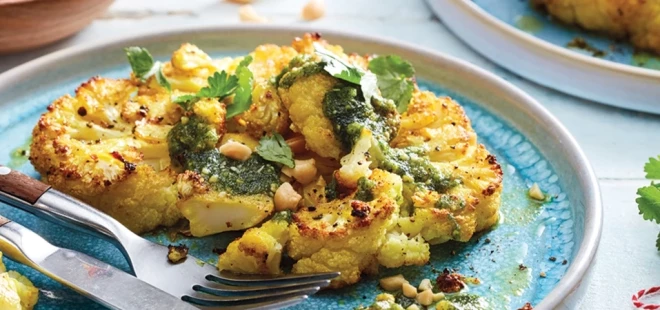 Cepti ziedkāpostu steiki ar koriandru