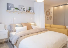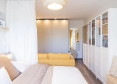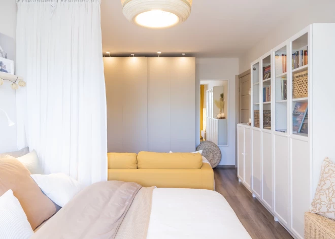 Pirms un pēc: kā vienā telpā iekārtot gan guļamistabu, gan dzīvojamo istabu