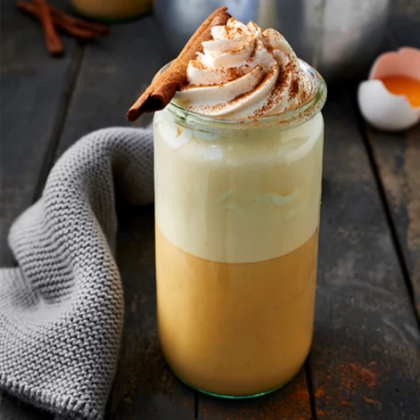 Rudenim turpinoties, arvien mainīgais lapu krāsojums vēsta par svētkiem, kuri tuvojas, atgādinot par garšām, kas raksturo šo priecīgo gada laiku, piemēram, karstvīnu vai olu liķieri – vēsu un mazliet stipru Ziemassvētku piena dzērienu. Atturībnieki var iztikt bez tradicionālā brendija, ruma, viskija vai burbona pievienošanas. Olu liķiera bāze – cukurs, olu dzeltenumi, olu baltumi, piens un saldais krējums – padara to par lielisku papildinājumu kafijai. Abu garšas lieliski sader, piedāvājot kafijas cienītājiem kofeīna devu, kas iemieso svētku noskaņu. Mūsu espreso, ar olu liķieri receptē ir pievienots burbons, kas papildināts ar putukrējumu un kanēli – tas ir ideāls veids, kā sasildīties pēc dienas uz kalna vai vienkārši tāpēc, ka esi to pelnījis.
