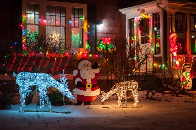 Neiztikt arī bez klasiskā svētku elementa - izgaismota Ziemassvētku vecīša, briežiem un sniegavīra, kas bieži veidoti no izturīgas plastmasas materiāla. Šos tēlus var novietot dārza centrā vai tuvumā mājas ieejai, lai tie kļūtu par galveno dekoratīvo epicentru. Papildus tam lieliski iederas izgaismotas eglītes, kas var būt gan dabiskas, gan mākslīgas un dekorētas ar lielām stikla vai plastmasas bumbiņām. Interjera dizainere iesaka, ka plašu un daudzveidīgu Ziemassvētku rotājumu izvēli eglītei, mājai un terasēm var meklēt tieši tiešsaistē.