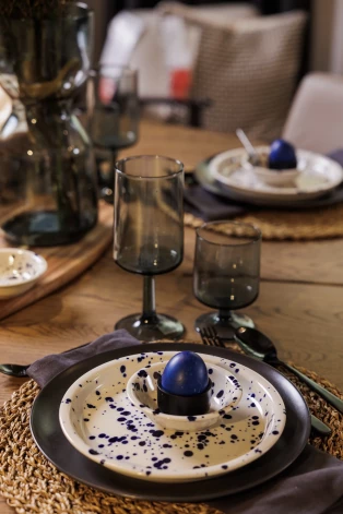 "Izvēloties traukus, apdomā, kādu ēdienu un dzērienus pasniegsi. Trauki bieži ir dārgākā galda klājuma daļa, bet nav jāmaina visa servīze, tā vietā var koncentrēties uz dekoratīvajiem elementiem un pievienot tikai kādu vienu jaunu, izteiksmīgu akcentu. Piemēram, koši dzeltenas bļodiņas izskatīsies svaigi un svētkiem piemēroti. Jāpatur prātā, ka krāsu paletei jābūt vienkāršai – pārāk daudzas krāsas ir grūti sakombinēt tā, lai palete būtu harmoniska, tāpēc ieteicams neņemt vairāk par četrām dažādām krāsām. Līdzsvarots vizuālais iespaids paliek arī tad, ja košas krāsas kombinē ar klasiski baltiem traukiem. Akcentam lieliski der pavasarīgi rozā, balti, dzelteni un zaļi toņi. Var pat izvēlēties tumšu un gaišu trauku salikumu – vienkrāsaini trauki vai trauki ar vienkāršu rakstu skaisti papildina cits citu."