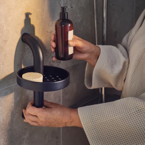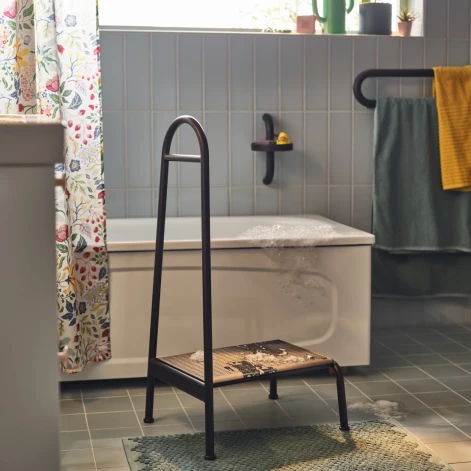 4. Pielāgo vannasistabu. Lai uzlabotu drošību un komfortu, bez atbalsta rokturu uzstādīšanas dizainers sniedz papildu padomus: “Lai novērstu paslīdēšanu, uz grīdas novieto neslīdošus paklājiņus un pie vannas vai dušas uzstādi plauktu, kur higiēnas līdzekļi būs viegli sasniedzami. Tāpat iespējams izmantot speciālu dušas krēslu vai vannas dēlīti, lai mazgāšanās būtu droša un ērta. Piemēram, IKEA nesen laida klajā iekļaujoša dizaina BÄSINGEN sēriju, kas ietver dušas krēslu, pakāpšanās soliņus ar margu un citas parocīgas preces. Radot šīs preces, dizaineri īpašu uzmanību pievērsuši funkcionalitātei –  noapaļotas malas, izturīgas un neslīdošas kājas, drenāžas atveres, kā arī atturīgs, ikvienā interjerā iederīgs dizains. Šādas nelielas, bet efektīvas izmaiņas uzlabo ikdienas dzīvi, neprasot lielus remontdarbus, kurus nav iespējams veikt, piemēram, īrētos īpašumos.”