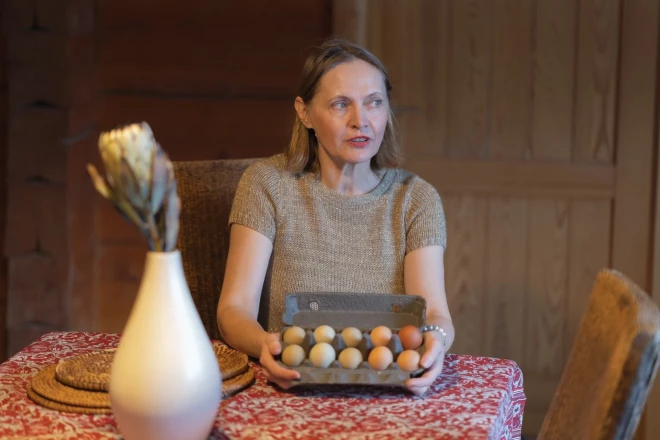 Gaiši zilas, zaļas, rozā – tik skaistās krāsās Ilze kārto kastītēs savu vistu olas. “Tagad Lieldienās ir problēma – olas tik skaistas, ka nav pat jākrāso! Lai kā esmu centusies ar zaļo tēju dabūt zaļas olas, nekad tās nav izdevušās tik skaistas, kā izdēj manas vistas!” teic Ilze un iedvesmota turpina: “Vistas ir ļoti skaistas. Es ļoti gribētu – un tādas man kādreiz būs! – cīņu vistiņas (Modern Game). Tās ir ar garām kājām, un izskatās, ka viņām līdz padusēm uzvilktas zeķbikses.” Vienlaikus saimniece uzsver, ka vistas ir liela atbildība, tās mēdz slimot un arī prasa daudz darba un rūpju: “Kūtiņas tīru katru rītu. Tāpat jārēķina līdzi, vai tas atmaksājas – vistas daudz ēd, mēdz slimot, un nu jau man vajadzīga papildu kūtiņa.” Runājot par vistu izvēli, Ilze iesaka izsvērt vairākus faktorus, piemēram, jāņem vērā, ka ir vistu šķirnes, kas izdēj tikai ap 170 olām gadā, un arī tādas, kas ap 320 olām.