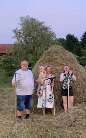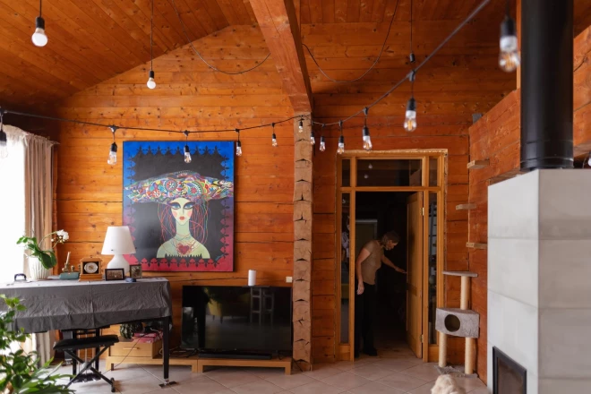 Ilze stāsta, ka būvniecības darbus mājās veicot viņi paši – vīrs ar dēlu uzcēluši gan ziemas dārzu (sākotnēji tā gan bijusi iecerēta kā telpa baseinam), gan kūtis. Izsaku apbrīnu par šādām prasmēm, uz ko Ilze atbild ar jautājumu: “Ja tu vīram palūgtu, viņš tev kūtiņu neuzceltu?” Viņa atklāj, kā ģimene pievērsusies būvniecībai: pirms laika mājai sācis brukt dakstiņu jumts, lai gan tam vajadzējis kalpot mūžu. Ģimenes vīrieši – Kaspars, dēls Francis un meitas vīrs Renārs – izpētījuši YouTube video, kā maināmi dakstiņi, un paši to arī izdarījuši. “Ja mājai esi pats nomainījis jumtu, tad ir skaidrs: vari izdarīt arī visu pārējo! Jā, neies tik ātri kā meistariem, bet izdarīt varēs,” ir pārliecināta Ilze, kas pati ir izmācījusies par mālmeistari. Proti, kad mājai siltinājuši sienas, viņa tās apmetusi ar mālu. “Tas ir fiziski ļoti smags darbs. Uz kvadrātmetru ir jāparedz ap 12 kilogramiem sausa māla, kas jāliek uz lielās velces.”