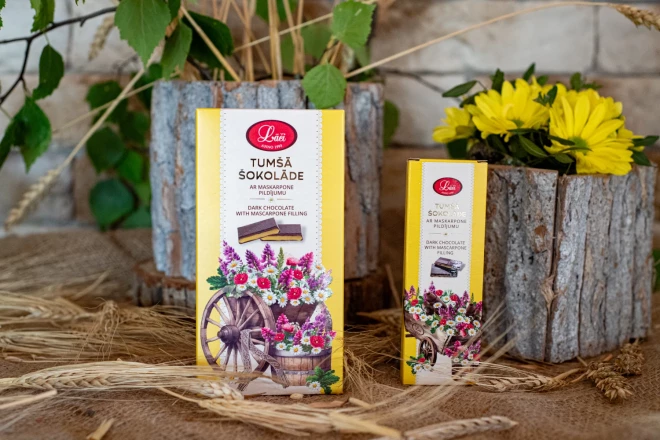 Papildinājumā – tumšās šokolādes tāfelītes ar maskarpones pildījumu. Tās būs lieliska dāvana vai ikdienas saldais prieks.