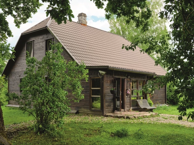 “Māja būvēta 1920. gadā kā jaunsaimniecība,” stāsta saimnieks Uldis. “Šī tolaik bija nabadzīgāku saimnieku māja, tāpēc būvēta kā stāvbūve, bagātākajās saimniecībās cēla guļbūves. Nabadzīgākie mājas būvēja no tievākiem baļķīšiem, kādus nu varēja iegūt, vertikāli liktie baļķi kā apdare tagad parādās arī iekšpusē. Kapitālā remonta laikā ēkai nomainīts jumts, logi, tā siltināta no ārpuses un apšūta ar dēļiem. Iekštelpās baļķi atbrīvoti no apmetuma, kas tos klāja, un eksponēti.”