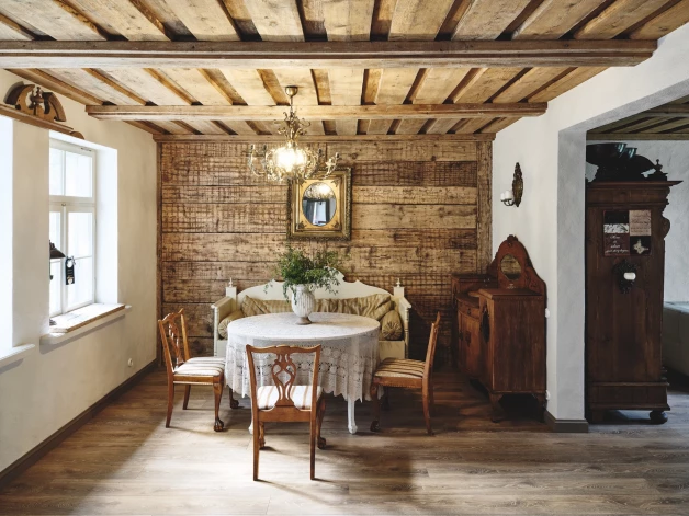 Saimniece smej, ka viņas hobijs atrast antikvariātos kādu pērli pārvērties par nomācošu nodarbi, jo uz veikaliem vajadzīgo lietu meklējumos jau devusies kā uz darbu. Daudzas mēbeles un interjera elementi atrasti antikvariātos un lietoto mēbeļu veikalos – Talsu Skandināvā, Siguldas Furnitēkā, Saldus Kumodē.