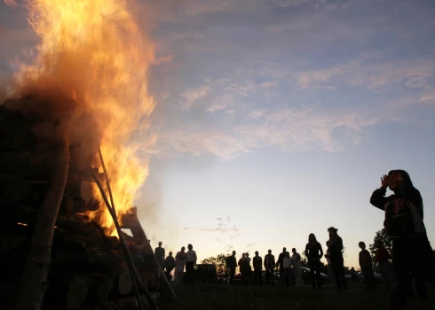 * Ar Jāņu vainagiem vai ozollapu viju izrotā ugunsvietu.