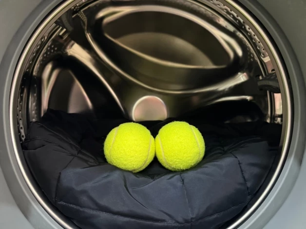 Tenisa vai žāvēšanas bumbiņas. Tās pasargā dūnas no saplakšanas jau mazgāšanas laikā.