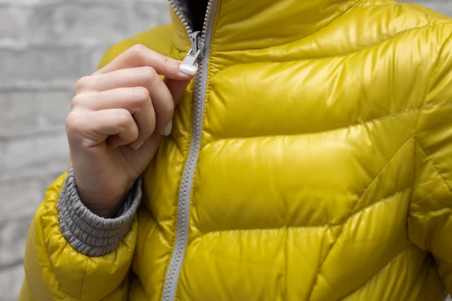 Noņemamas detaļas. Kapuces, kažokādas apmales un citi piekariņi jānoņem — tie var sabojāties vai traucēt žāvēšanu.