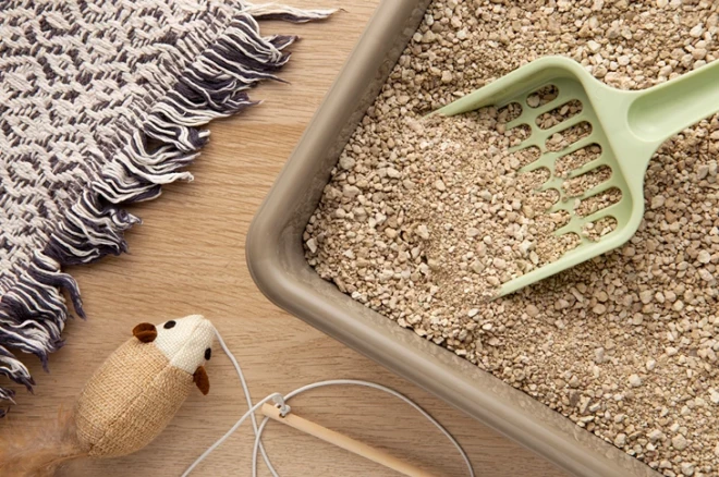 - Pārliecināties, ka abas ir piepildītas ar smiltīm (vēlams, vienādām). Lai radītu pazīstamu smaržu, jaunajā kastē var ielikt nedaudz smilšu (vienu vai divas lāpstiņas) no vecās, jau lietotās tualetes.