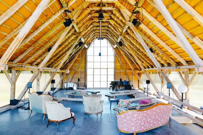 “Es baudu šo radošo laiku!” izsaucas skaņu ainavu dizainere Zane Dombrovska, kad kopā braucam uz Ropažiem apskatīt viņas Skaņu muižu 360, pirmo telpisko skaņas koncertzāli Latvijā. Lai arī tajā vēl norisinās aktīvi būvniecības darbi, paralēli tiem – arī telpiskas mūzikas piesātināti pasākumi. Turklāt tieši šeit tapusi daļa no skaņas Skolu jaunatnes dziesmu un deju svētkiem.