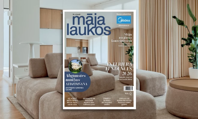Vēl šajā numurā - iedvesmojošs stāsts par māju Jāņupē, kur valda miers, atturīga elegance un pārdomāta vienkāršība; ieskats 2026. gada interjera tendencēs, kas palīdzēs mājokli veidot ne tikai skaistu, bet patiesi savu; praktisks pavasara darbu kalendārs dārzam; saruna par ēdamo meža dārzu - vidi, kur cilvēks mācās sadarboties ar dabu. Tāpat iepazīstam jūras konteineru māju plusus un izaicinājumus, kā arī meklējam pavasari receptēs svētku galdam.