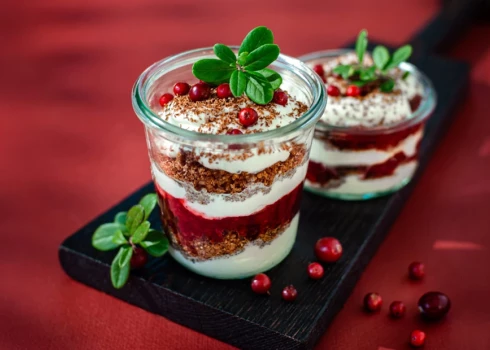6.Lej zupu šķīvjos, katrā ieber pa ½ tējk. kaperu un ieliec dažas bazilika lapiņas.