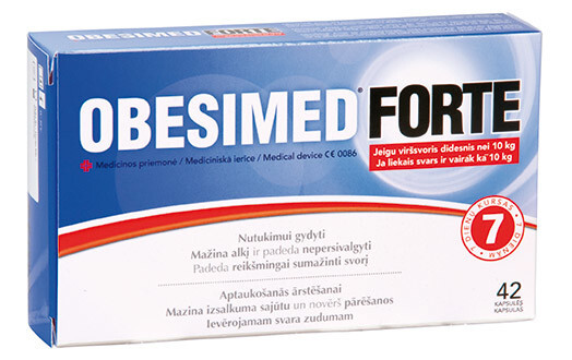 OBESIMED FORTE ir dabisks medicīnisks preparāts, kas palīdz samazināt svaru un kontrolēt apetīti. Lietojot šo preparātu pirms ēdienreizes, šķīstošo šķiedrvielu komplekss izveido kuņģī želejveida masu, rodas pilna vēdera sajūta, tādēļ Jūs mazāk ēdīsiet, ātrāk sajutīsiet sāta sajūtu, nemocīsieties ar izsalkumu, samazināsiet tieksmi ēst starp ēdienreizēm. Ar OBESIMED FORTE Jums būs vieglāk samazināt maltītes apjomu un atteikties no dažādiem kārumiem.