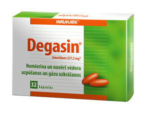 Degasin® ir medicīnas ierīce, kas veicina zarnu un vēdera labsajūtu cilvēkiem, kuri cieš no pārmērīgas gāzu uzkrāšanās kuņģī un zarnu traktā, piemēram: meteorisms, vēdera uzpūšanās, spiediena un pilnuma sajūta vēdera apvidū. Degasin® aktīvā viela simetikons samazina gaisa burbulīšu virsmas spraigumu. Degasin® var arī lietot pirms tādiem diagnostiskiem izmeklējumiem vēdera dobumā, kā endoskopiska, rentgenoloģiska un sonogrāfiska izmeklēšana. Degasin® ir produkts ar spēcīgu sastāvu un ir efektīvs risinājums pret vēdera uzpūšanos. Dienā nepieciešamas tikai 1- 2 Degasin® kapsulas.