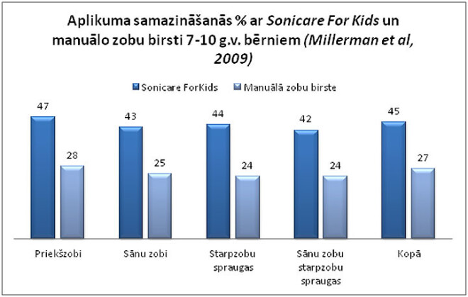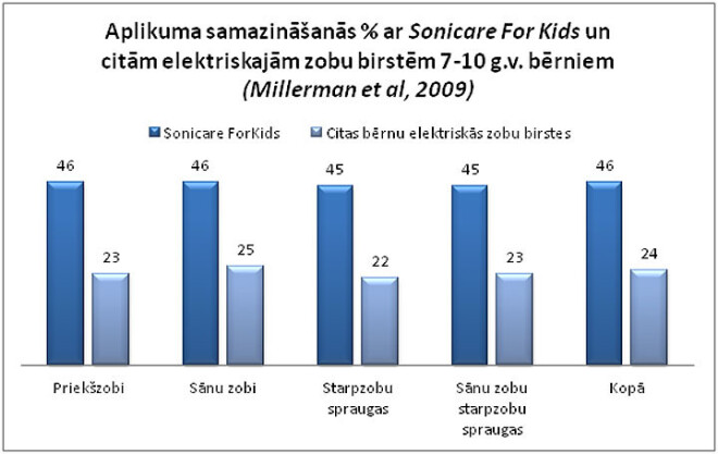 (1) no visiem aptaujātajiem vecākiem, salīdzinot ar zobu birstes izmantošanu vienatnē (2) Milleman J, Putt M, Olson M, Master A, Jenkins W, Schmitt P, Strate J. International J Pediatric Dent 2009; 19:s1 (3) Jenkins W, Master A, Defenbaugh J, Wei J. Philips Oral Healthcare, Snoqualmie, WA; J Dent Res 89 (spec iss B); Abstract 3696, 2010