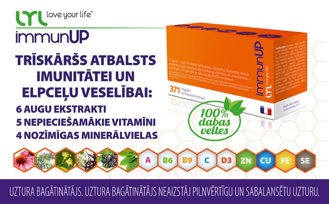 Tā trīs gadus atpakaļ soli pa solim nonācu līdz uztura bagātinātājam LYLimmunUP. Pirmkārt, tas satur veselu buķeti tieši to un tieši tik daudz, kas mums rudens un ziemas periodā šeit visvairāk nepieciešams. Tajā bioloģiski aktīvās vielas apvienotas ar vitamīniem un minerālvielām, kas organismam rada viegli uztveramu formu un garantē visu sastāvā esošo vielu uzsūkšanos, ļaujot tām iedarboties pēc iespējas plašāk. Otrkārt, LYLimmunUP sastāvs ir radīts, ņemot vērā tieši Baltijas reģionam visus raksturīgākos imūnsistēmas izaicinājumus. Tikpat svarīgs arguments man bija tas, ka LYLimmunUP satur optimālo vielu daudzumu – tieši tik daudz, lai darbotos organisma labā, bet to lieki nenoslogotu un nemazinātu organisma dabiskās aizsargspējas. Rezultātā katra LYLimmunUP kapsula ne tikai spēcina imunitāti, bet spēj darboties arī plašāk: mazinot nogurumu un nespēku, palīdzot uzturēt labas elpceļu aizsardzības spējas, veicinot normālu vairogdziedzera darbību, uzturot veselus kaulus, zobus, rūpējoties par ādas, matu un nagu veselību.