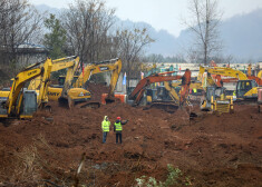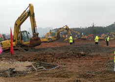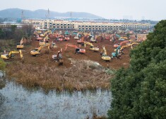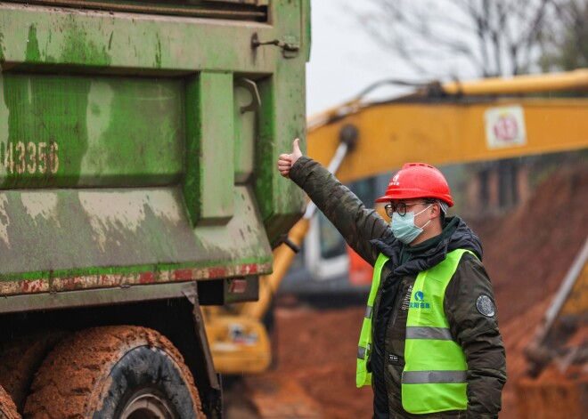 Ķīna rekordātrumā ceļ jaunu slimnīcu ar koronavīrusu sasirgušajiem