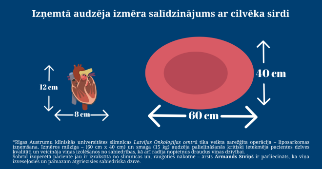 Rīgas Austrumu klīniskās universitātes slimnīcas Latvijas Onkoloģijas centrā šī gada janvāra sākumā tika veikta sarežģīta operācija – liposarkomas izņemšana.