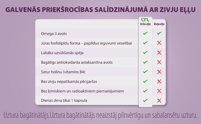 Arī dabīgā veidā krila eļļā esošajam astaksantīnam ir svarīga loma sportiskajā ikdienā – kā tīrākais un spēcīgākais no dabā zināmajiem antioksidantiem, tas pasargā šūnas no bojājuma, ko izraisa nestabilās molekulas jeb brīvie radikāļi, kas rodas paaugstinātas fiziskas slodzes laikā. Man svarīgi ir arī tas, ka LYL Krila eļļas produkti ir pilnīgi tīri no radioaktīviem un citiem ķīmiskiem, tostarp smago metālu piemaisījumiem. Iemesls pavisam vienkāršs – krils, viens no vismazākajiem organismiem dabā, savas mazās masas un īsā mūža dēļ, nespēj uzņemt nekādu piesārņojumu. Turpretim zivīs, no kurām arī iegūst omega-3 taukskābes, augstākā vai zemākā koncentrācijā var būt atrodams dzīvsudrabs un citi smago metālu piesārņojumi.