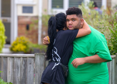 Keitija Praisa ar dēlu Hārviju apmeklē omīti Eimiju, ievērojot noteikto 2m distanci