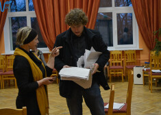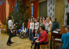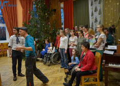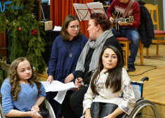 Gatavojoties Ziemassvētku labdarības akcijas "Nāc līdzās!" koncertam, 2016. gada 18. decembrī Strazdumuižas internātvidusskolas zālē kopā ar bērniem un jauniešiem ar ...