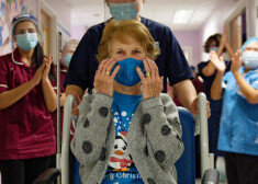 Lielbritānijā, kur uzsākta iedzīvotāju masveida imunizācija pret Covid-19, pielietojot "Pfizer"/"BioNTech" izstrādāto preparātu, vakcinēts pirmais cilvēks - 90 gadus vecā Mārgareta ...