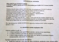 Pacientiem arī jāiepazīstas ar informāciju par vakcināciju, kas sniegta uz vienas A4 lapas puses. Tajā skaidrots, ka vakcīna stimulē imūno sistēmu ražot antivielas, kas pasargā pret Covid-19 infekciju, kā arī uzsvērts, ka vakcīna nesatur pašu vīrusu, tādēļ tā nevar izraisīt saslimšanu ar šo infekciju.