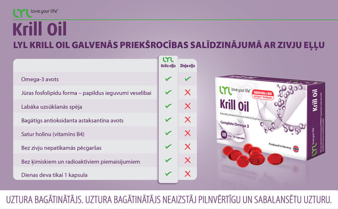 Uz šo brīdi vietējais farmācijas zīmols LYL love your life® piedāvā sekojošus krila eļļas produktus: