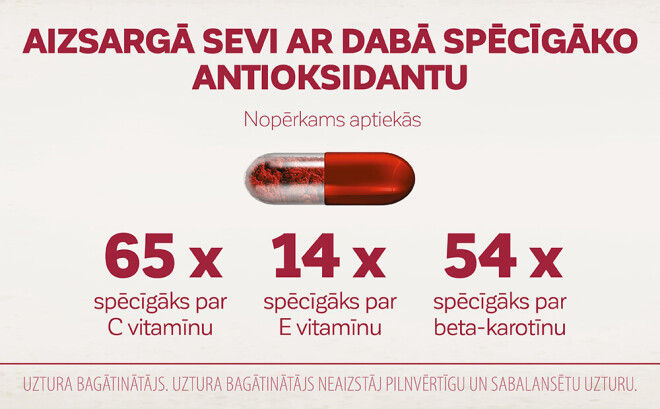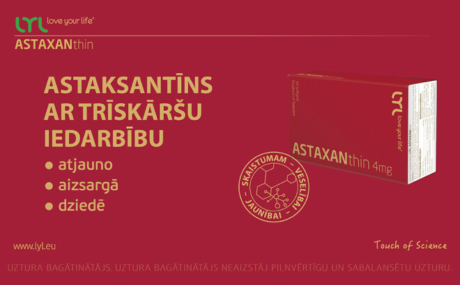 Lasot pieejamo informāciju par LYL ASTAXANthin, uzzināju vēl vairākus ļoti iepriecinošus faktus – tas palēnina UV starojuma izraisītu ādas novecošanu, samazina ādas mitruma zudumu un pigmentācijas plankumu rašanos. Lietojot šo astaksantīnu, es ne tikai pabaroju savas smadzenes, bet arī palīdzu savai ādā ilgāk būt jaunai un skaistai. Tas taču ir milzīgs ieguvums sievietes skaistuma bāram. Tagad tikai atcerējos, ka tas taču ir tas pats jaunības saglabāšanas brīnumlīdzeklis, par kuru 10 gadus atpakaļ runāja Opra Vinfrija savā sarunu šovā. Esmu ļoti priecīga, jo saprotu, ka esmu atradusi sev dabisku un spēcīgu palīgu savām ikdienas gaitām.