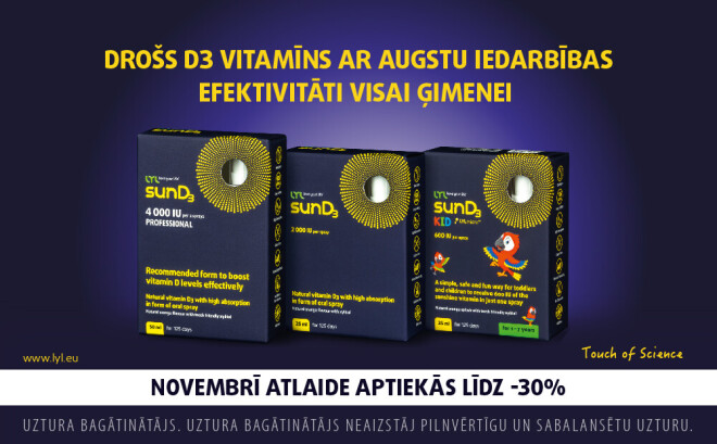 Novembrī LYLsunD3 ar atlaidi līdz -30% aptiekās un interneta aptiekās.