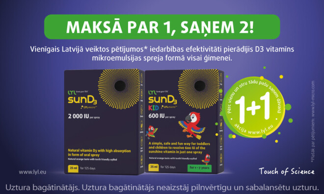 Februārī LYLsunD3 KID akcija – pērc vienu un saņem vēl vienu iepakojumu dāvanā, pieejams www.lyl.eu .