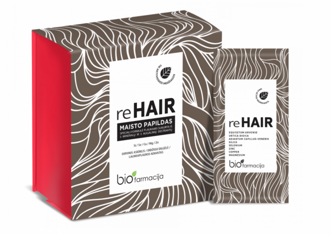 Lai samazinātu matu izkrišanu, uzlabotu matu kvalitāti un augšanu, ieteicams, papildus ārīgi lietojamiem līdzekļiem, izvēlēties arī uztura bagātinātājus, kas stiprinās organismu no iekšpuses. "Re-Hair" ir jaunums Latvijas tirgū. Tas ir revolucionārs produkts, kas bagātināts ar magniju, cinku, selēnu un varu. Šis komplekss palīdz uzturēt matu veselību un veicina normālu matu pigmentāciju. "Re-Hair" sevī ietver arī īpaši atlasītu dabas zālīšu spēku – tīruma kosas lakstu ekstrakts stiprina ādas audus, veicina kolagēna un elastīna sintēzi, kā arī nodrošina epitēlija reģenerāciju, kā rezultātā galvas āda ir veselīga un matu augšana atjaunota. Lielās nātres lapu ekstrakts nodrošina ādas šūnu vielmaiņu un stimulē atjaunošanos, piešķirot matiem spēku un spīdumu. Savukārt, papardes ekstrakts novērš matu izkrišanu.