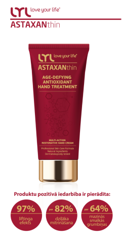 Izrādās, par visefektīgāko roku ādas kopšanas līdzekli viņa ir atzinusi pašmāju farmācijas zīmola LYL love your life® radīto LYL ASTAXANthin roku krēmu Age-Defying Antioxidant Hand Treatment. Un ziniet, kāpēc? Jo šī krēma sastāvā ir unikāla antioksidantu formula, kas nodrošina trīskāršu “anti-aging” efektu: tas atjauno, aizsargā un spēcina ādu šūnu līmenī, rūpējoties par dziļu ādas mitrināšanu un barošanu.