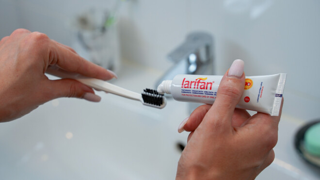 Šāda papildu pretvīrusu iedarbība ir zobu pastai Larifan – tās oriģinālais sastāvs speciāli paredzēts mutes dobuma gļotādas kopšanai, pasargājot no kaitīgiem ārējās vides faktoriem. Šī zobu pasta arī izceļas ar nomierinošu un viegli atsāpinošu iedarbību, kas var uzlabot pašsajūtu cilvēkiem ar dažādām stomatīta izpausmēm, kas mutes gļotādu padara sāpīgu un jutīgu.