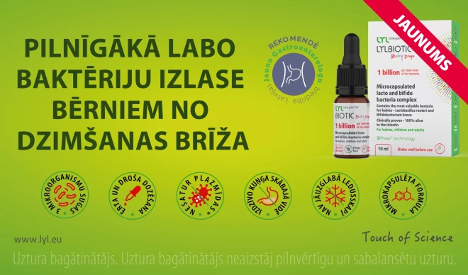 Dodoties uz aptieku, jau zināju, kas manam mazulītim nepieciešams, – probiotikas, kas lietojamas vienreiz dienā un kuru sastāvā ir pētījumā minētās baktērijas. Farmaceite ieteica izvēlēties jaunumu – Latvijas farmācijas zīmola LYL love your life® LYLBIOTIC Baby Drops, norādot, ka iepriekšējās šī zīmola labās baktērijas bija ļoti pieprasītas jauno vecāku vidū un šīs noteikti neatpaliek.