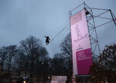 Akcijas laikā unikālā performancē līdzsvara akrobāts desmit metru augstumā demonstrēja, cik nestabila ir vēža pacientu ikdiena veselības sistēmā, nereti esot vien soļa attālumā no kritiena.