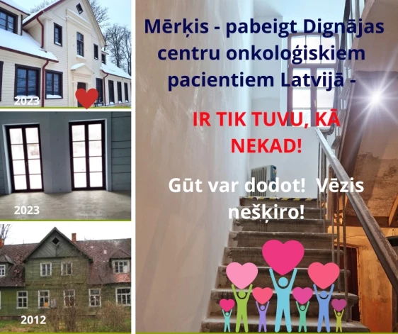 Onkoloģisko pacientu atbalsta biedrība “Dzīvības koks” ir uzsākusi ziedojumu akciju ar mērķi pabeigt psihosociālā rehabilitācijas centra Dignājā rekonstrukciju, lai jau šovasar tur varētu uzņemt onkoloģiskos pacientus.