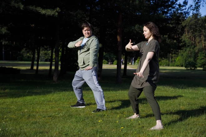 Daudzi pacienti “Jaunķemeros” ir sajūsmā par Cigun nodarbībām, kas tiek rīkotas agri no rīta ārā, svaigā gaisā. Mārtiņam šī bija pirmā pieredze ar Cigun. “Ievēroju, ka nodarbības apmeklē ļoti daudzveidīga publika – gan dāmas, kuras var brīvi uztaisīt jebkuru pozu, gan vīri, kuriem pacelt rokas ir sarežģīti. Patīkami, ka Cigun instruktore Diāna neaizrāvās ar šīs vingrošanas filosofijas skaidrošanu – ja kādu tas ieinteresēs, viņš noteikti pats atradīs nepieciešamo informāciju. Fiziskas aktivitātes svaigā gaisā, protams, ir patīkamas, bet man atkal jārunā atklāti par savām sarežģītajām attiecībām ar vingrošanu… Ir vairākkārt sanācis izmēģināt vingrošanu, kas balstās kādā filosofijā, piemēram, joga. Bet šis nav mans variants, jo man joga tik un tā vienmēr ir un paliek vienkārši vingrošana. Turpretim mana sieva Dita trīs reizes nedēļā mostas sešos no rīta, lai ietu uz jogas nodarbībām un viņai tas patīk. Es to nevaru izdarīt, jo joga man nepatīk, arī seši no rīta nepatīk un, treškārt, mērķis “būt veselīgam” šķiet pārāk abstrakts. Dodu priekšroku aktivitātēm, kurās ir sacensības gars, azarts un drīzāk būšu no tiem, kuri drīzāk kampaņveidīgi aizrausies ar fiziskām aktivitātēm. Tikai tad, kad ir akūta, konkrēta nepieciešamība, piepūšu vaigus un daru, jo zinu, ka jātiek tam smagajam periodam pāri. Bet tiklīdz esmu pāri – izelpoju un aizmirstu! Jā, šai ziņā droši vien esmu tipisks vīrietis, vai ne?”