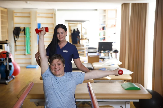 Toreiz vingrošana mēneša garumā prasīgas fizioterapeites uzraudzībā vainagojusies arī ar vizuāli novērtējamiem rezultātiem: “Manu veselību kūrorta rehabilitācijas centrā "Jaunķemeri" uzraudzīja neiroloģe Elīna Malkiela. Pēc tam, kad intensīvs rehabilitācijas process bija ildzis jau mēnesi, daktere mani izmeklēja un teica: “Klau, nu jau jūs vairs neārstējaties, bet gan kačājaties. Laiks braukt mājās!””