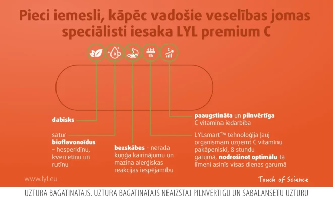 LYL premium C pieejams aptiekās un interneta aptiekās ar atlaidi līdz 35%.