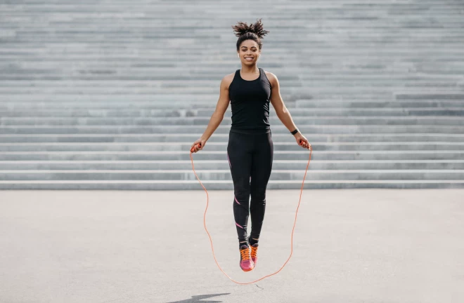 1. Lēkšana ar lecamaukli, vai lēkāšana, liekot kājas plati, tad atkal kopā: šis vingrinājums paātrinās sirdsdarbību un iekustinās vielmaiņu, turklāt tas iedarbojas uz visām ķermeņa muskuļu grupām.