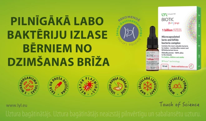 Daktere ieteica pamēģināt pašmāju farmācijas zīmola LYL love your life® probiotikas LYLBIOTIC Baby Drops, jo to sastāvā ir šo baktēriju sugas un tās var lietot mazulīši jau no dzimšanas. Šīs probiotikas iesaka gan Latvijas Jauno gastroenterologu biedrība, gan, atsaucoties uz jauno māmiņu pieredzi, arī citi viņas kolēģi.