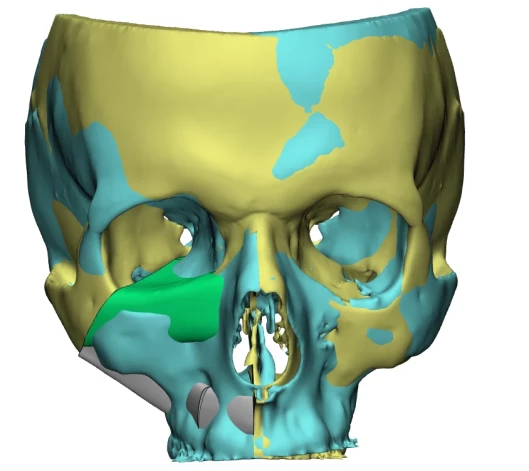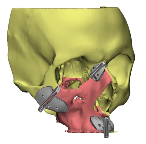 Pacientam ar apakšstilba kaula un mīksto audu mikrovaskulāro lēveri tika atjaunotas cietās, mīkstās aukslējas, augšžokļa kauls zobu un vaiga kaula līmenī, tādējādi novērošot sejas deformāciju un asimetriju, kā arī dodot iespēju veikt zobu implantāciju nākotnē. Savukārt ar otru mikrovaskulāro kaula lēveri no pacienta iegurņa tika atjaunota acs orbītas mediālā, apakšējā un daļa laterālās sienas, lai nodrošinātu anatomisku acs atrašanās pozīciju un novērstu acs miglošanos un redzes dubultošanos.