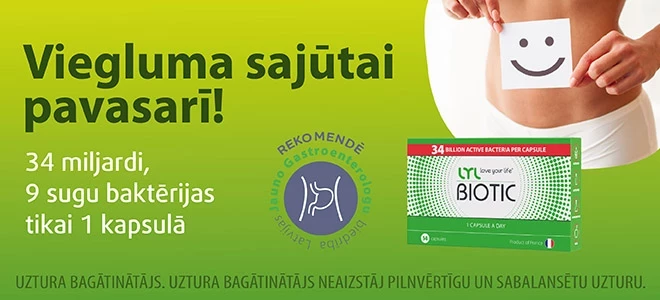 Nekad tādas neesmu lietojusi, neko daudz par tām nezinu, bet, iestājoties pavasarim, ir sajūta, ka vismaz piecus ziemas laikā uzkrātos kilogramus vajadzētu dabūt nost… Tāpēc nolēmu pamēģināt un devos taisnā ceļā uz aptieku. Farmaceite man piedāvāja pašmāju farmācijas zīmola LYL love your life® ražotās LYLBIOTIC, jo šīs probiotikas ir ne tikai izstrādātas kopā ar ārstiem-gastroenterologiem, balstoties uz klīnisko un zinātnisko pētījumu rezultātiem, bet arī labo baktēriju kompleksā tikai vienā kapsulā, kas ir ražotāja noteiktā deva, ir iekļauts superliels baktēriju skaits – 34 miljardi. Farmaceite norādīja, ka liela ir arī baktēriju daudzveidība – deviņas sugas –, un tās ir identiskas baktērijām, kas mīt cilvēka organismā. Turklāt šīm kapsulām ir īpašs apvalks DRcaps™, kas garantē, ka baktērijas pa ceļam uz zarnām agresīvajā kuņģa pH vidē neaiziet bojā un dzīvas nonāk līdz zarnu traktam, kur tām ir jāiedzīvojas. Savukārt iedzīvoties tām palīdz probiotiku barības viela – prebiotikas, kas arī ir iekļautas LYLBIOTIC sastāvā.