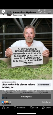 Nupat feisbukā un citos soctīklos, manā vārdā uzdarbojas nekrietni krāpnieki, cenšoties pārdot kaut kādu it kā brīnumlīdzekli – Oculax redzes uzlabošanai. Viltus Intervijā var lasīt, ka es, noliedzot ķirurģisku un medikamentozu acu un citu slimību ārstēšanu, solu 99% gadījumu redzes uzlabošanu ar šo līdzekli. Esmu iztēlots, kā acu slimību speciālists un šī pasākuma vadītājs.